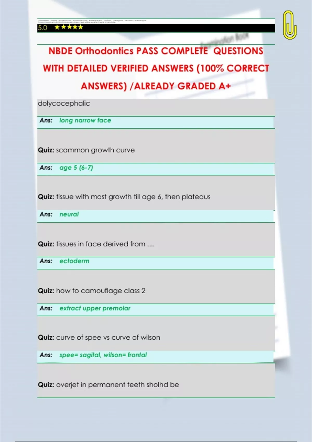 NBDE Orthodontics PASS COMPLETE QUESTIONS