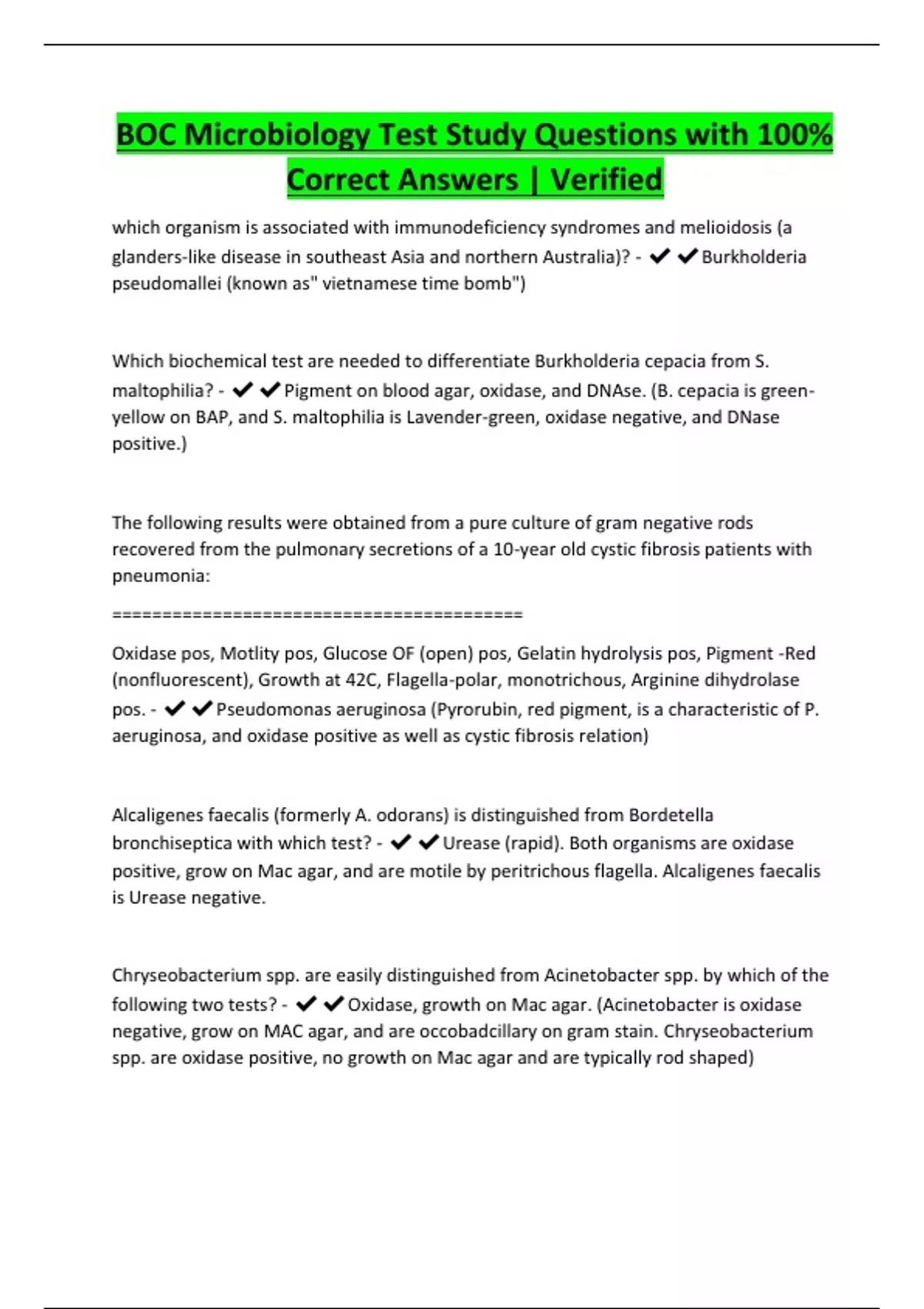 BOC Microbiology Test Study Questions with 100% Correct Answers | Verified