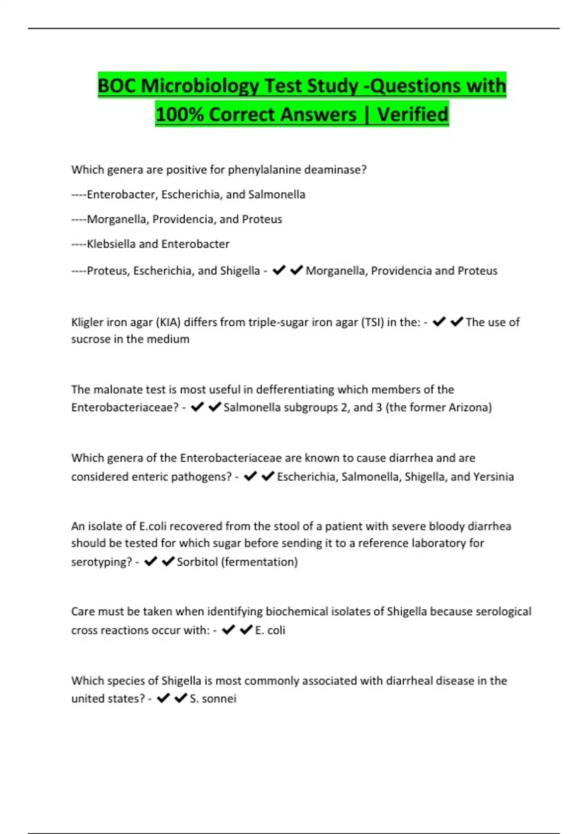 BOC Microbiology Test Study -Questions with