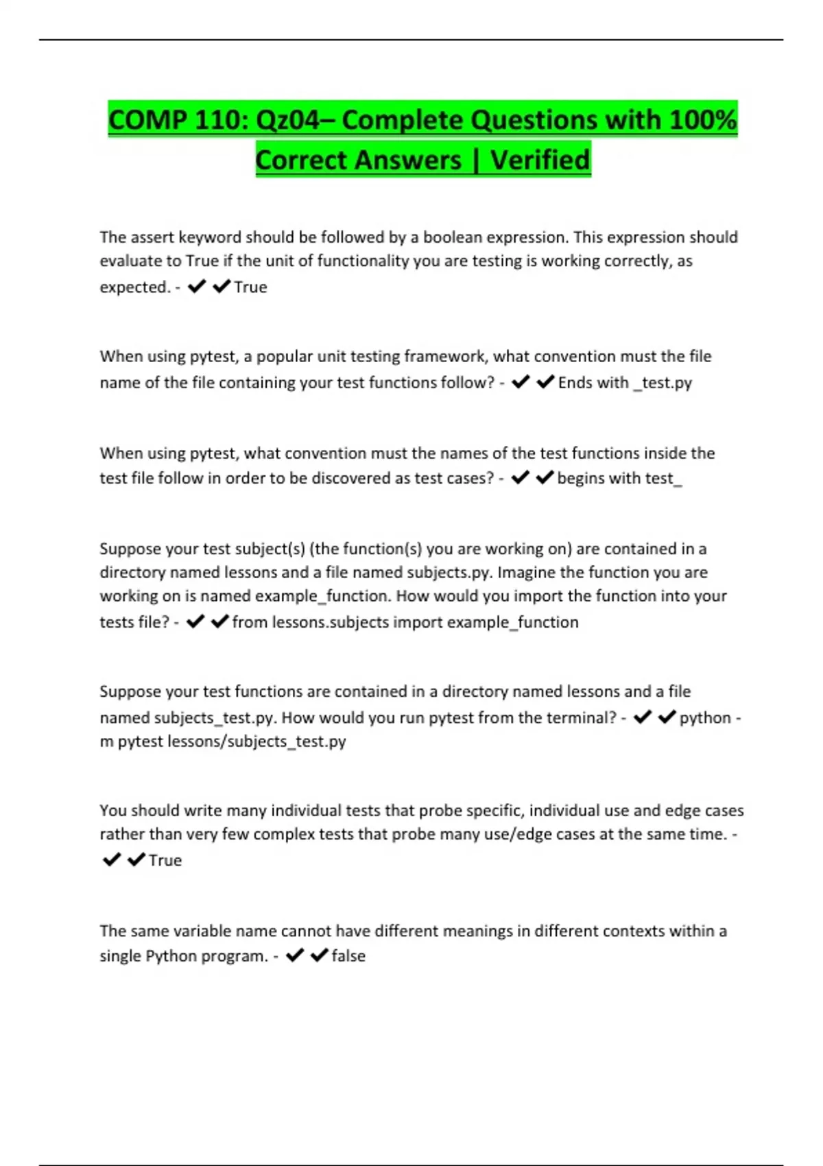 COMP 110: Qz04– Complete Questions with 100% Correct Answers | Verified