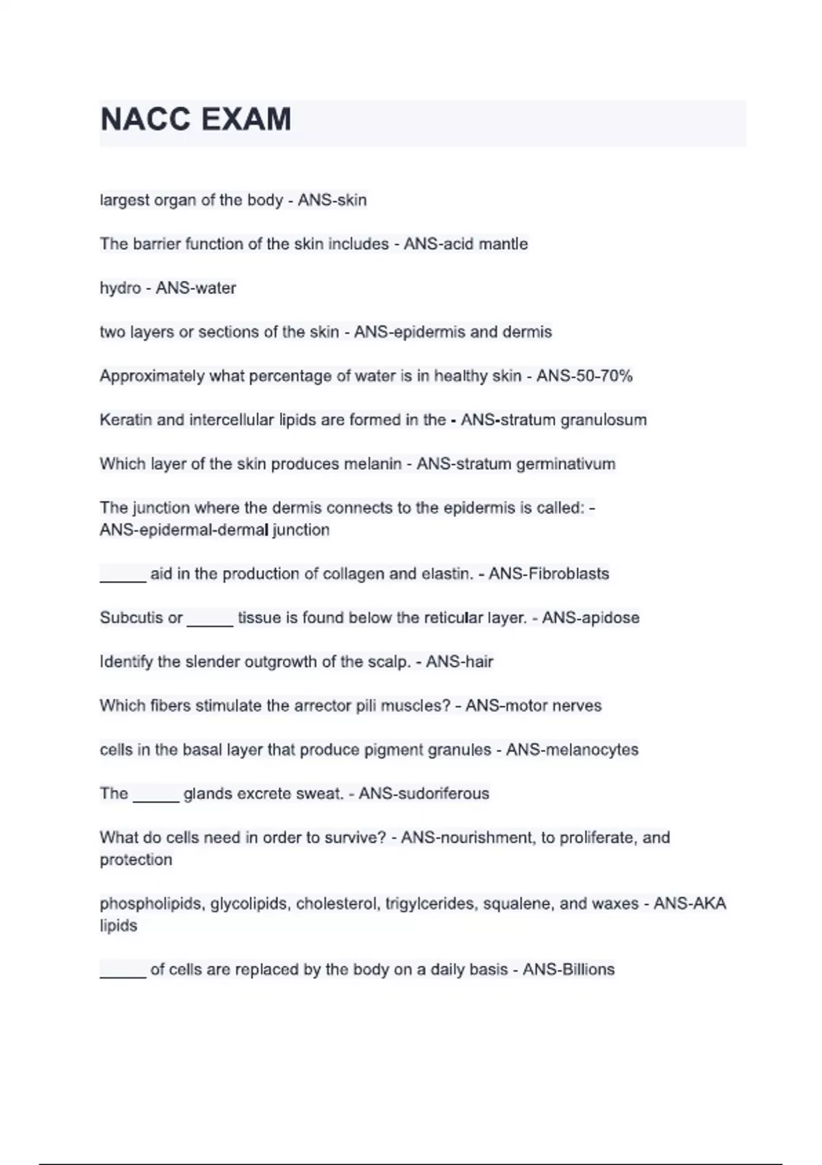 NACC EXAM Questions & answers