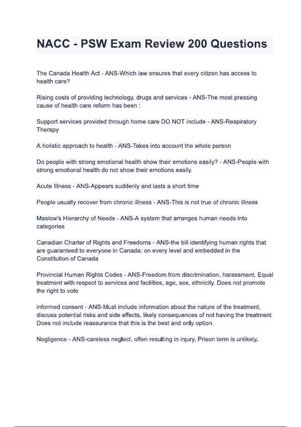 NACC - PSW Exam Review 200 Questions & answers