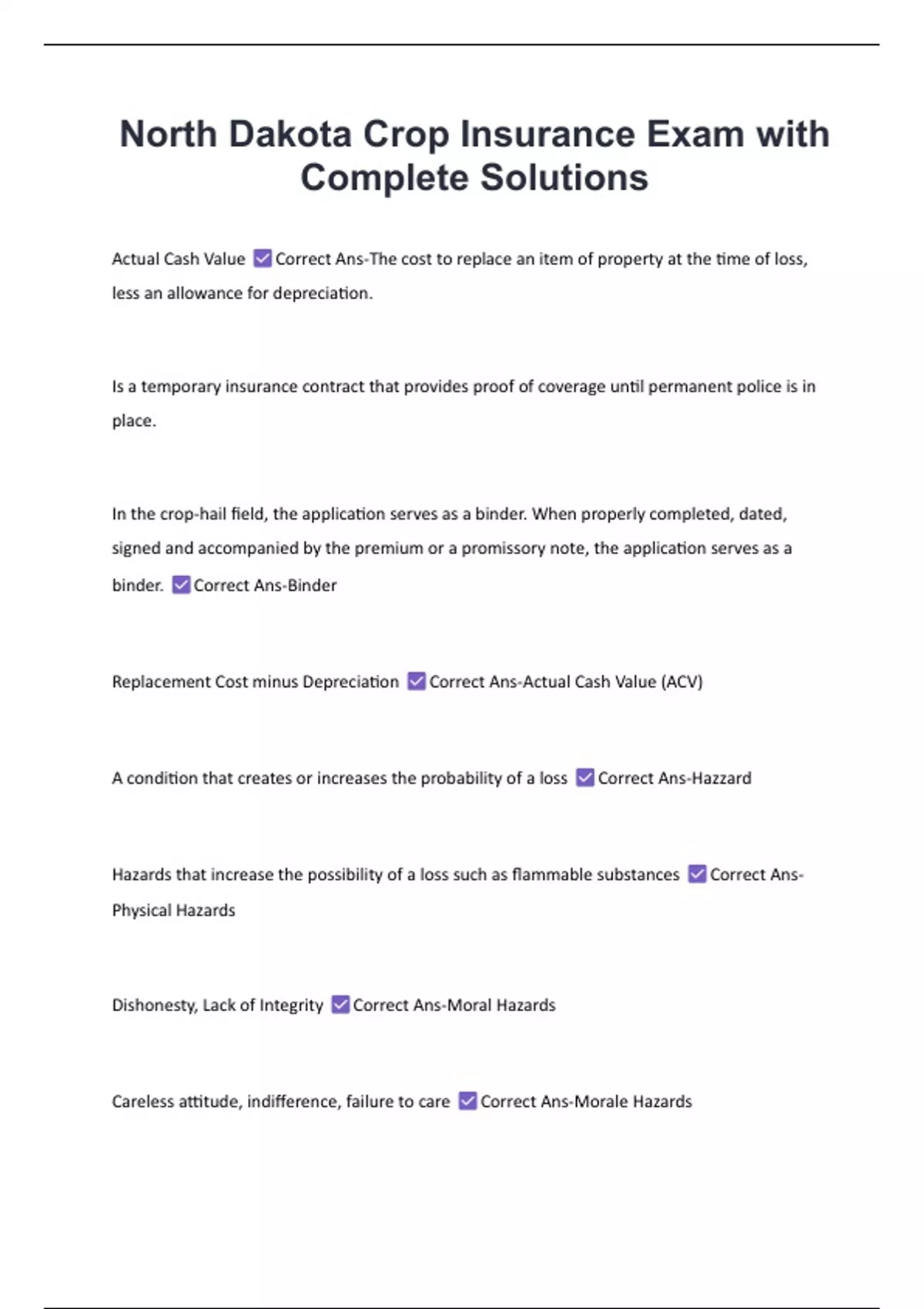North Dakota Crop Insurance Exam with Complete Solutions