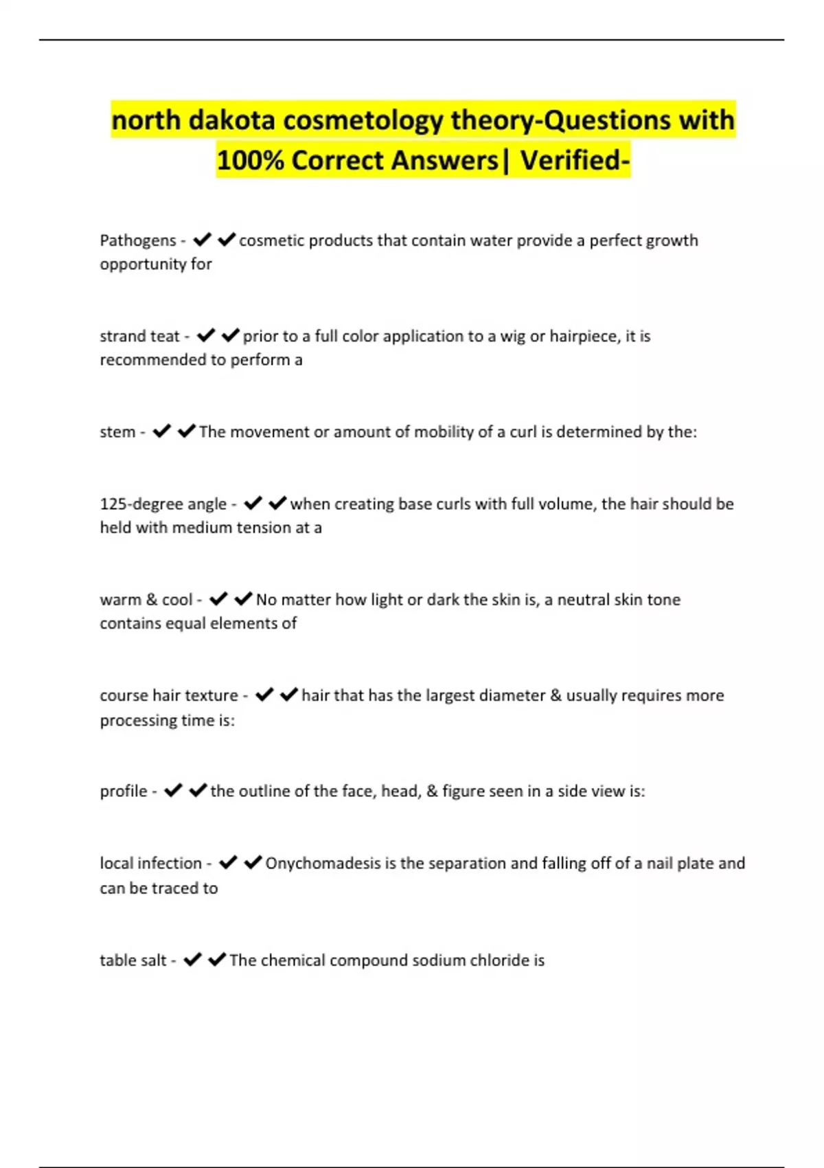 north dakota cosmetology theory-Questions with 100% Correct Answers| Verified