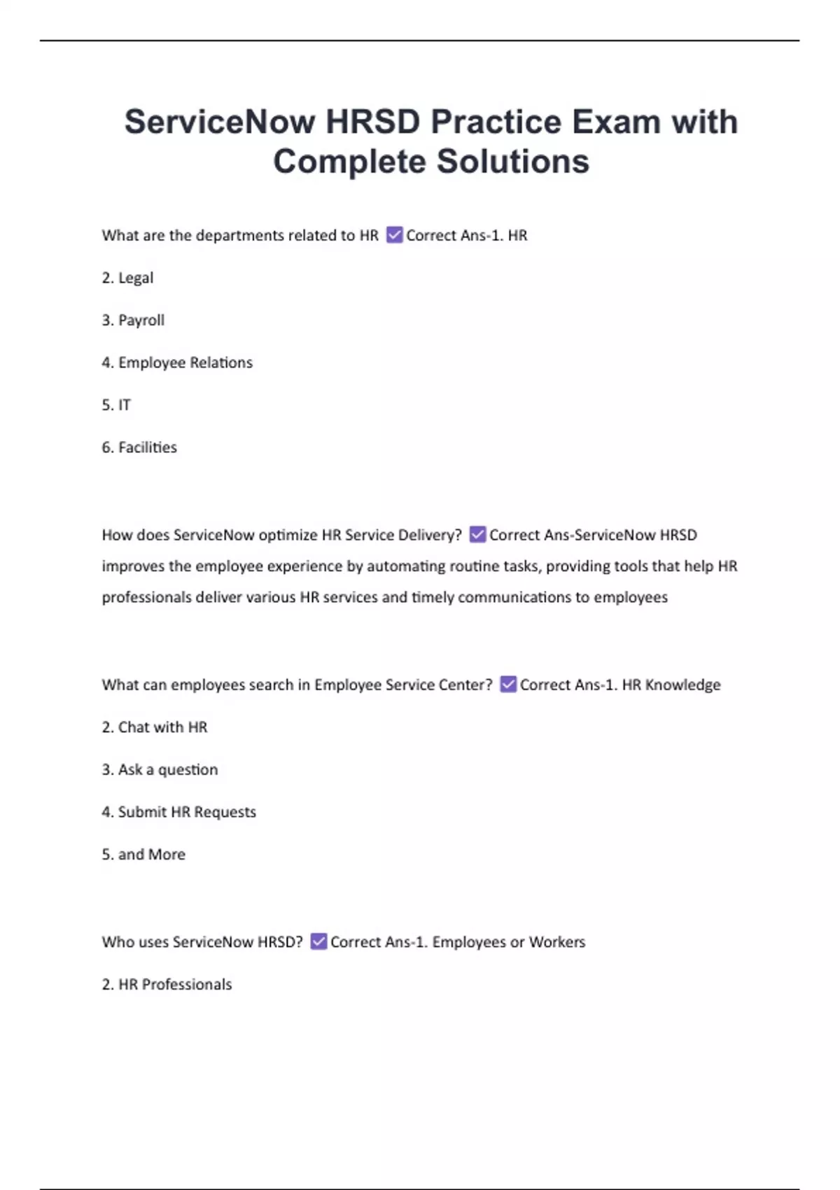 Who uses ServiceNow HRSD? Correct Ans-1. Employees or Workers