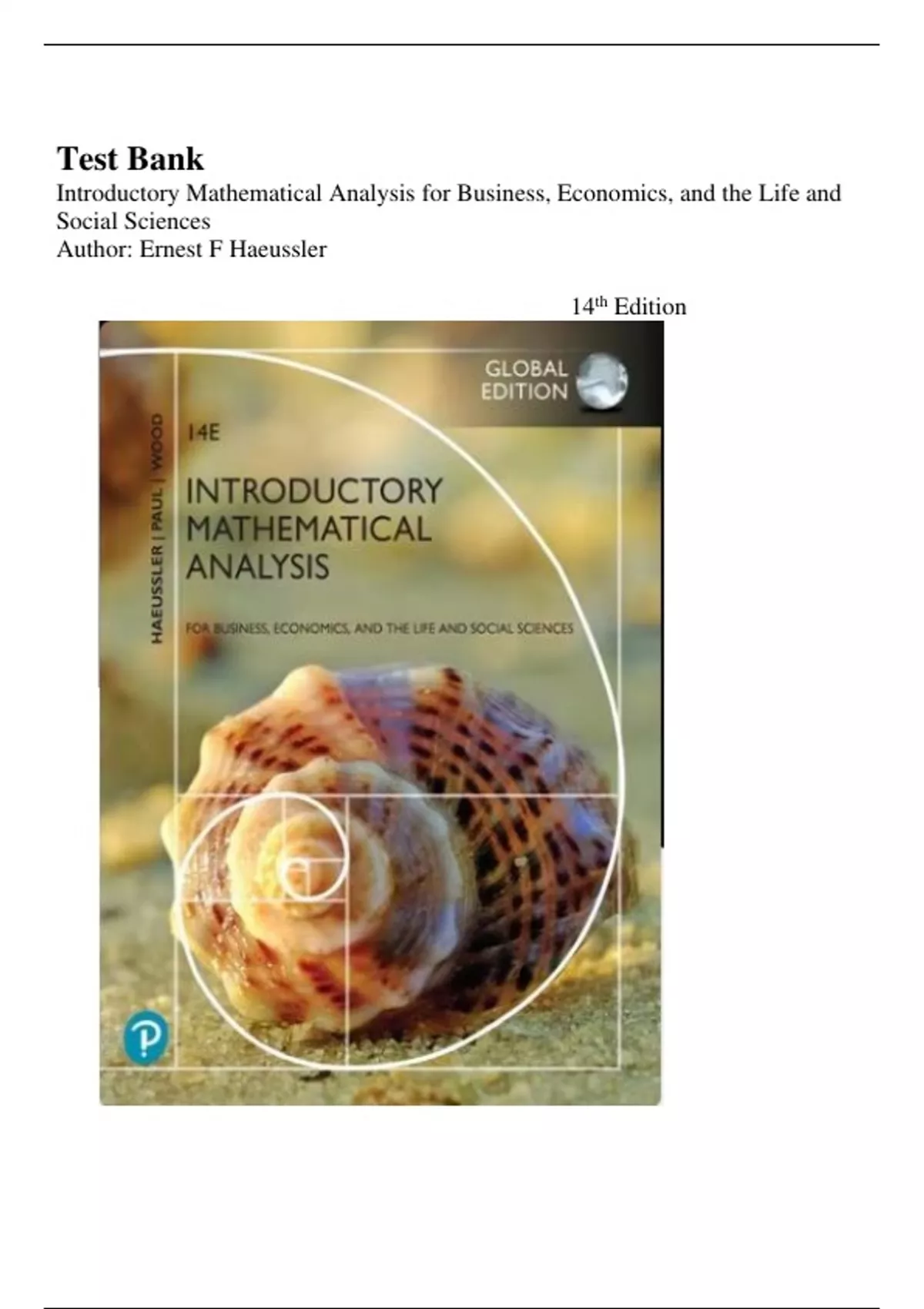 Test Bank For Introductory Mathematical Analysis for Business, Economics, and the Life and Social Sciences 14th Edition By: Ernest F Haeussler . All Chapters 1-17| Latest Edition