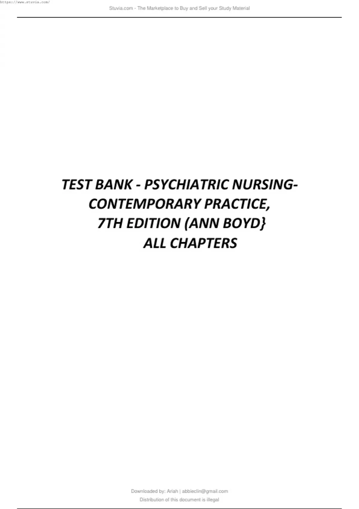 Test Bank For Psychiatric Nursing Contemporary Practice. 7th Edition By Mary Ann Boyd; Rebecca Luebbert All Chapters Covered|| 100% Verified Answers|| Updated Edition|| 2025