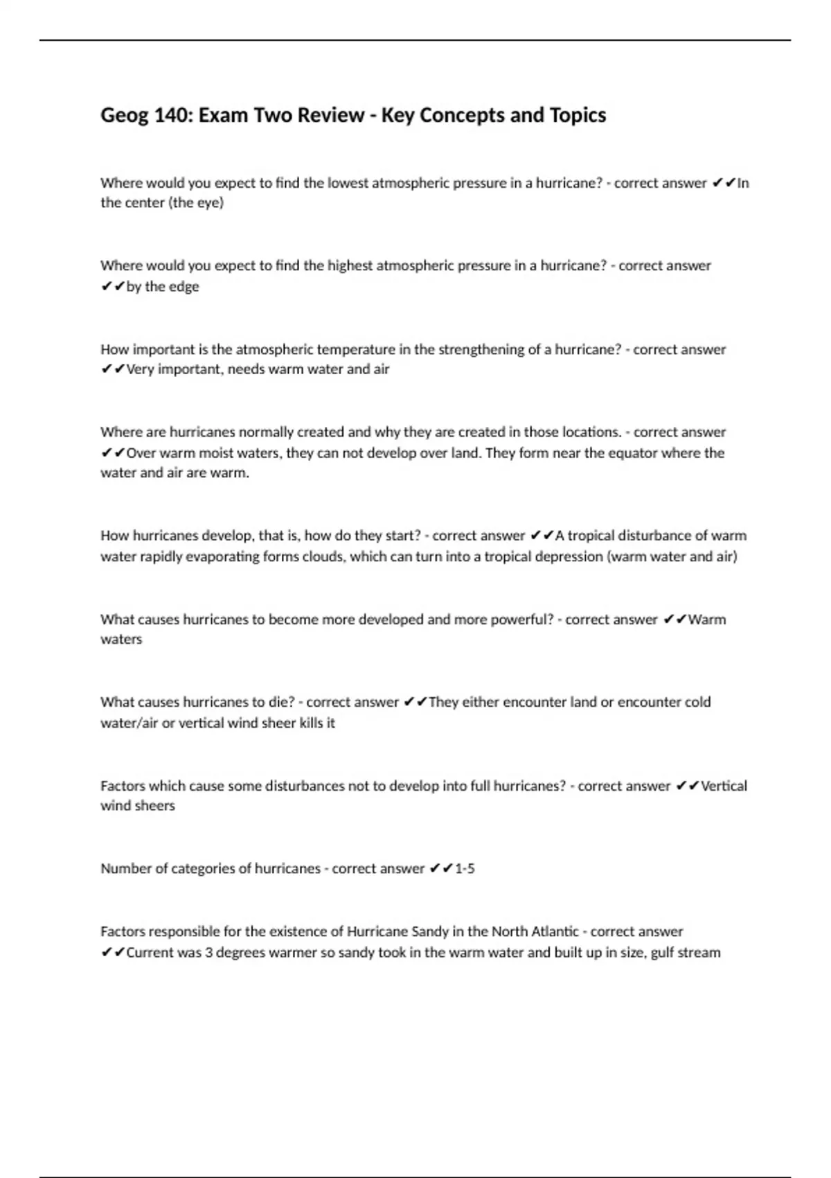 How hurricanes develop, that is, how do they start? - correct answer ✔✔A tropical disturbance of warm