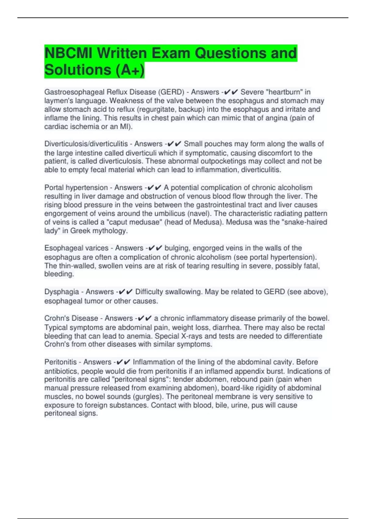Gastroesophageal Reflux Disease (GERD) - Answers -✔✔ Severe "heartburn" in