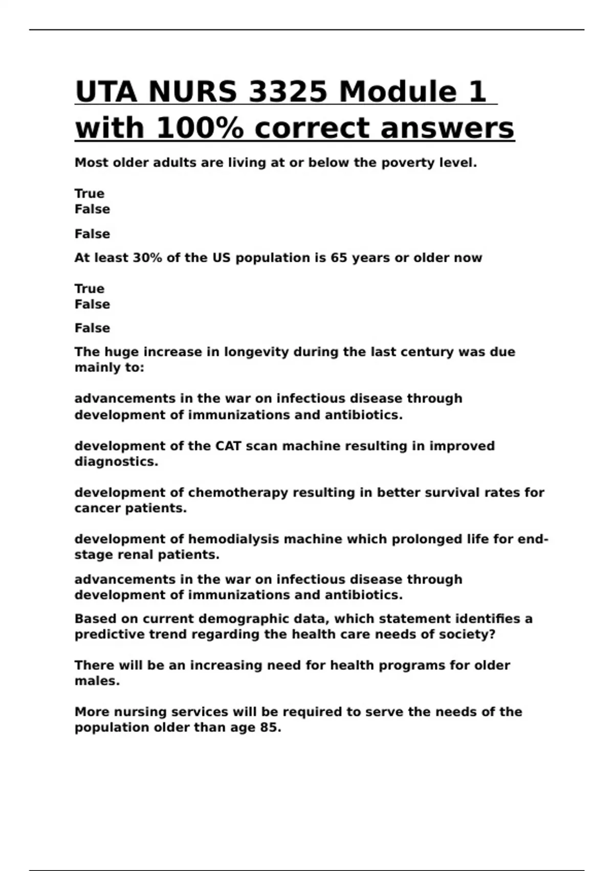 UTA NURS 3325 Module 1 with 100- correct answers.