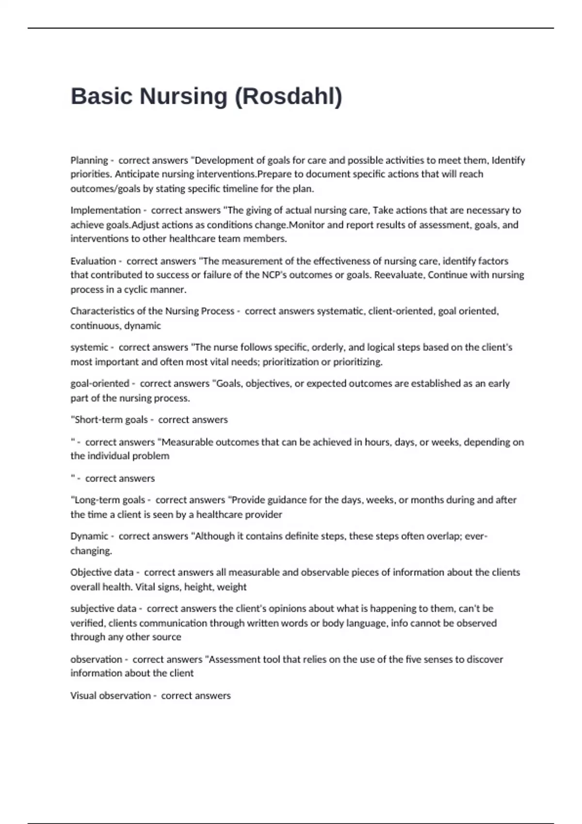 complete health history - correct answers "helps develop an effective plan of care for the client. It