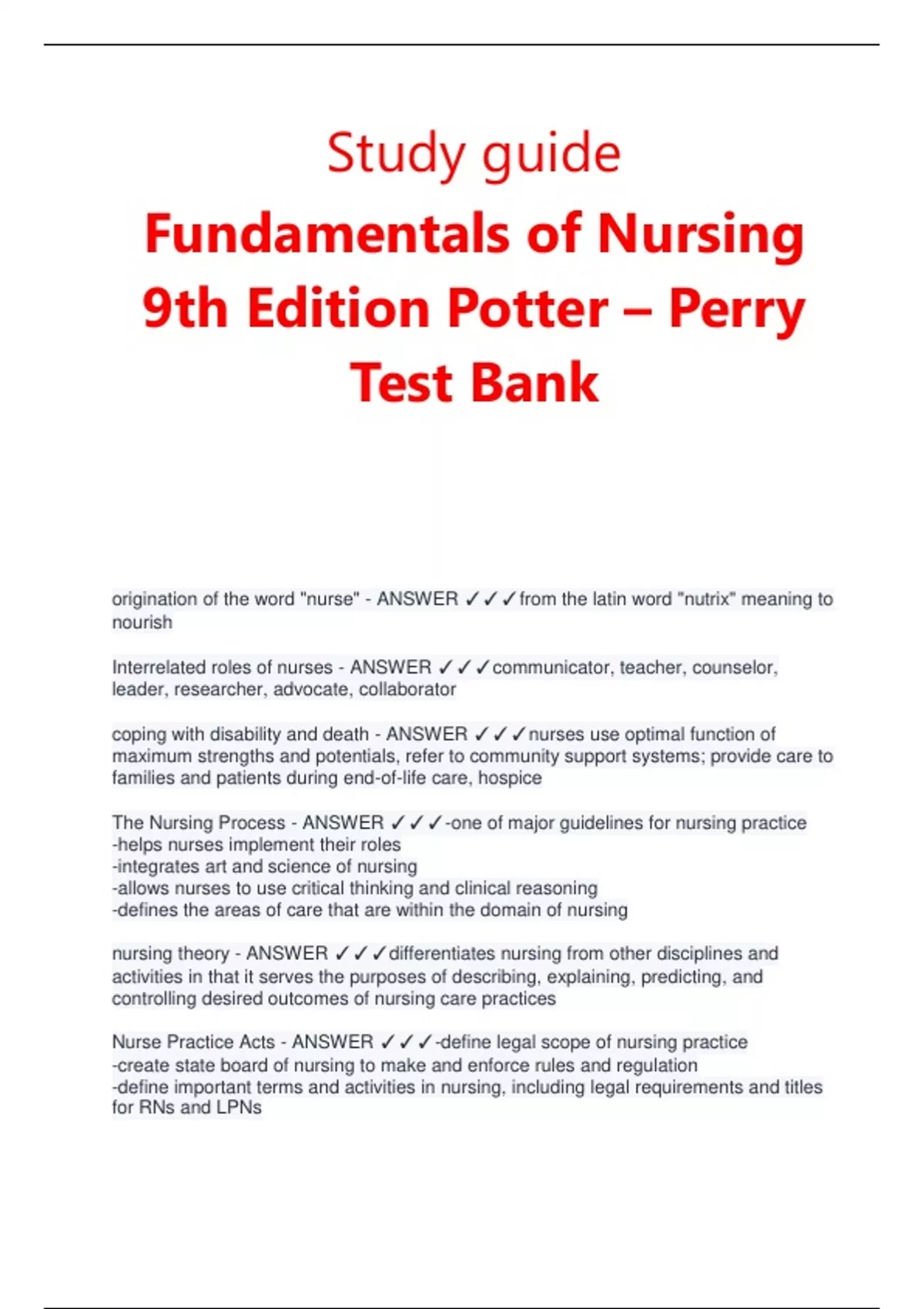 Nurse Practice Acts - ANSWER ✓✓✓-define legal scope of nursing practice