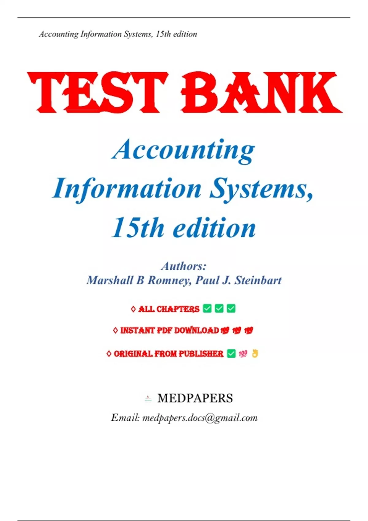 Test Bank - Accounting Information Systems 15th Edition, Marshall B Romney, All Chapters 1-24