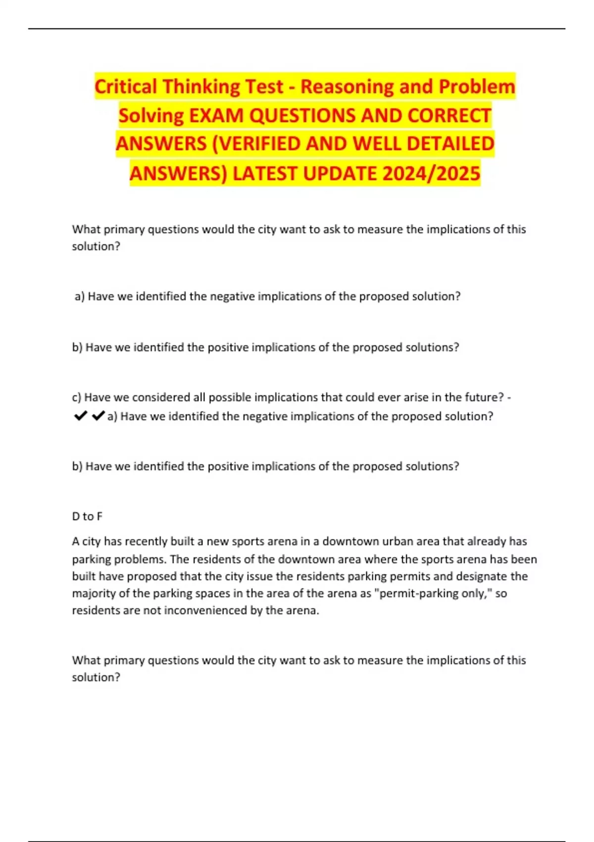 ✔✔a) Have we identified the negative implications of the proposed solution?
