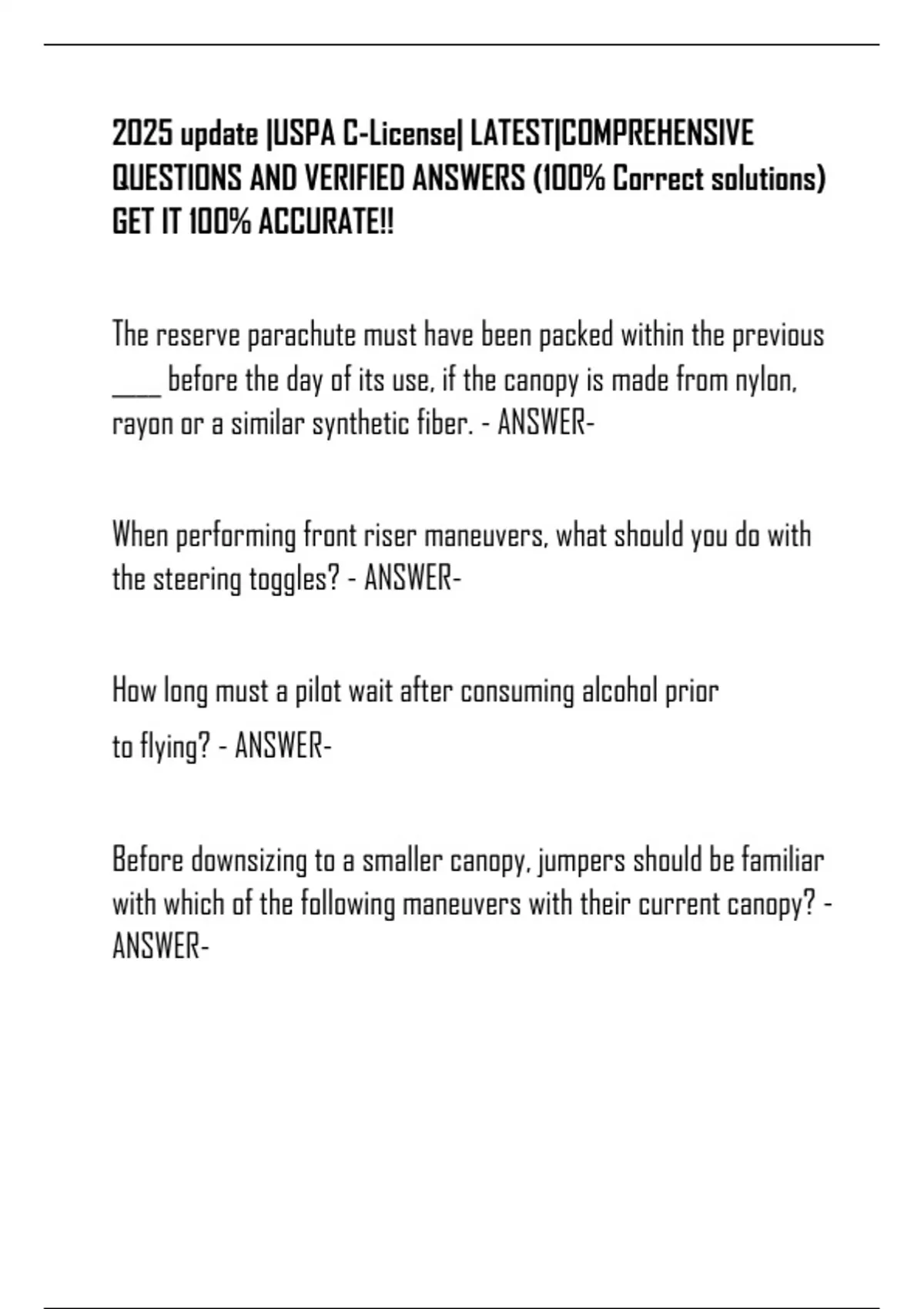 for B-licensed skydiver must occur by? - ANSWER-