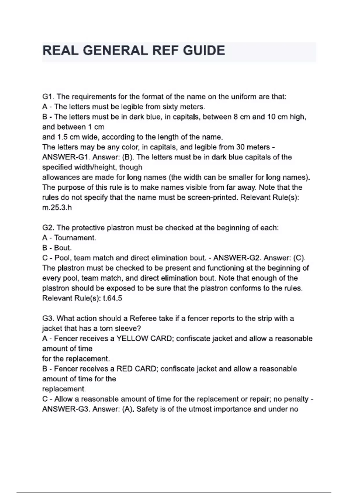 real general ref guide questions and answers
