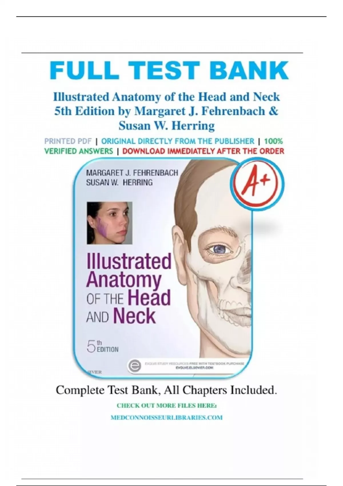 Test Bank for Illustrated Anatomy of the Head and Neck, 5th Edition by Margaret J, Fehrenbach & Susan W. Herring / 9780323675529 / All Chapters included| LATEST
