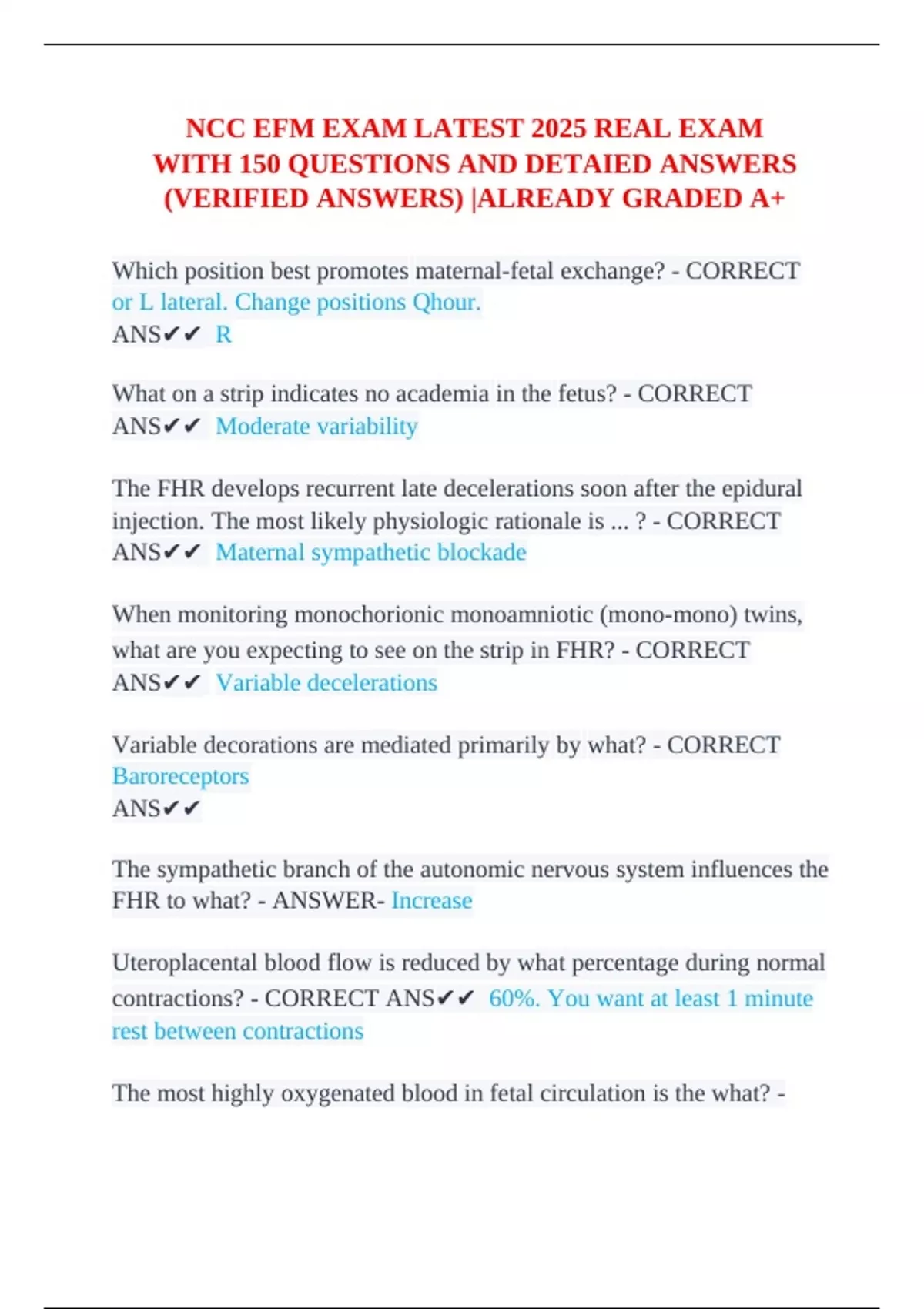 using EFM should occur how often? - CORRECT ANS✔✔ Q5 minutes