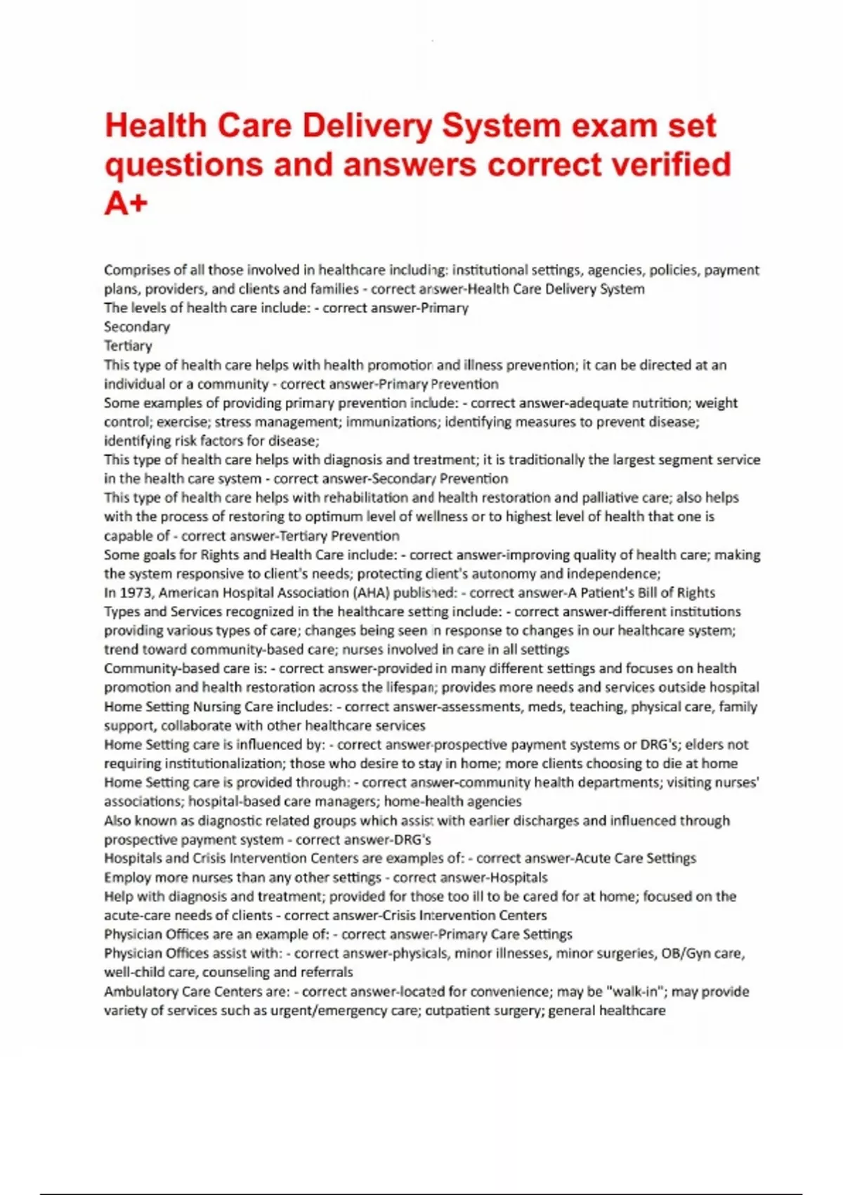 Health Care Delivery System exam set questions and answers correct verified A.pdf Health Care Delivery System exam set questions and answers correct verified A.pdf Health Care Delivery System exam set questions and answers correct verified A.pdf Health Care Delivery System exam set questions and answers correct verified A.pdf