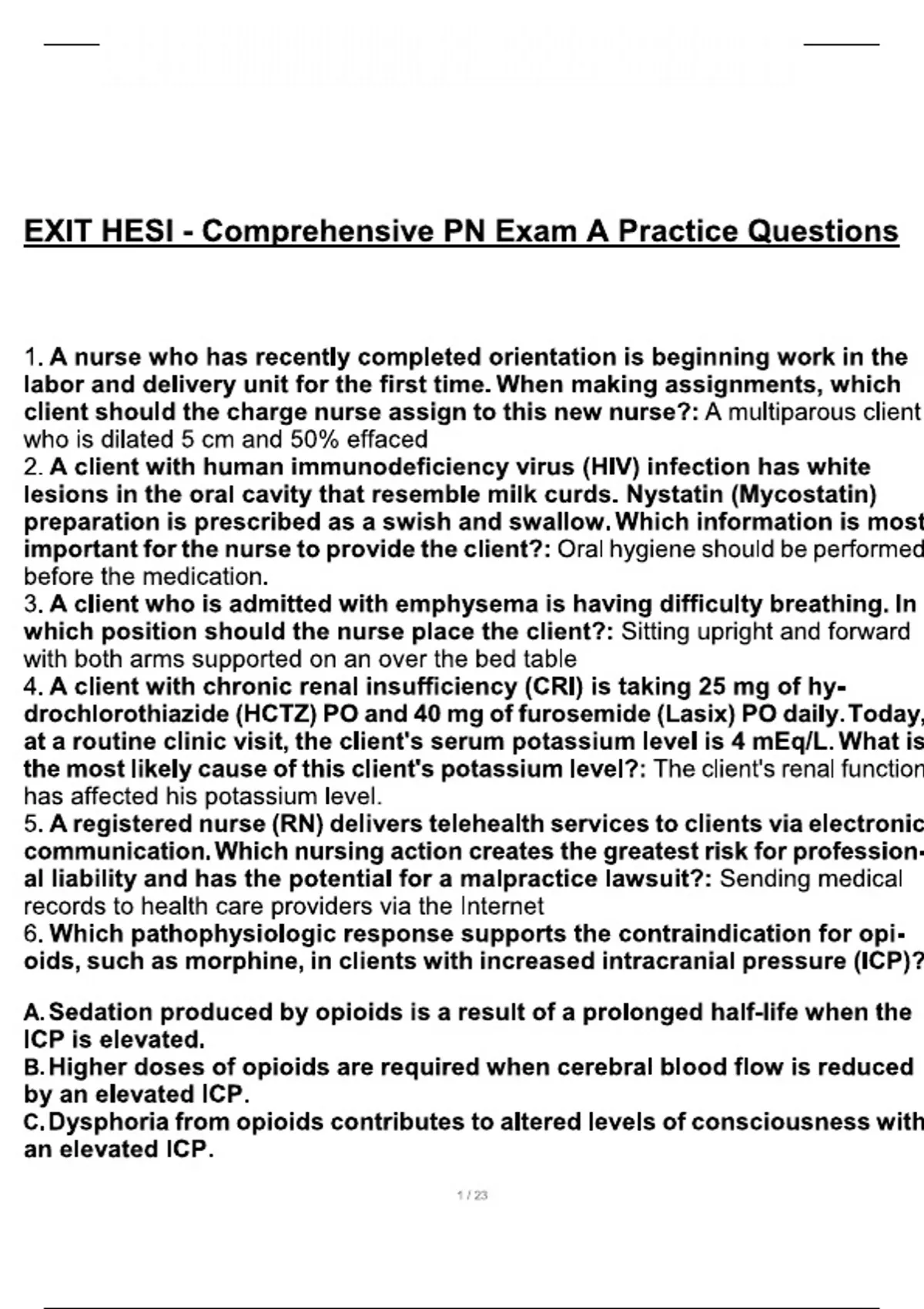 EXIT HESI - Comprehensive PN Exam A Practice Questions