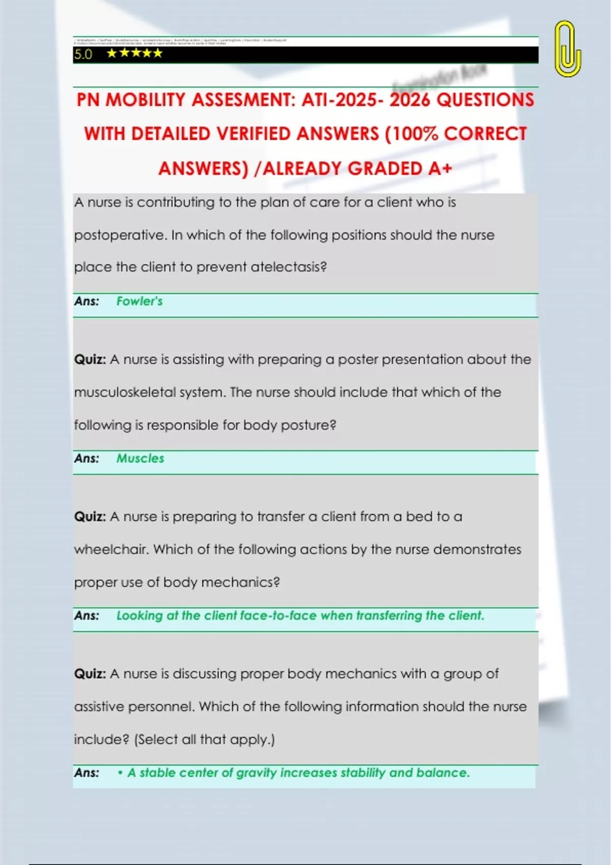 PN MOBILITY ASSESMENT: ATI-2025- 2026 QUESTIONS