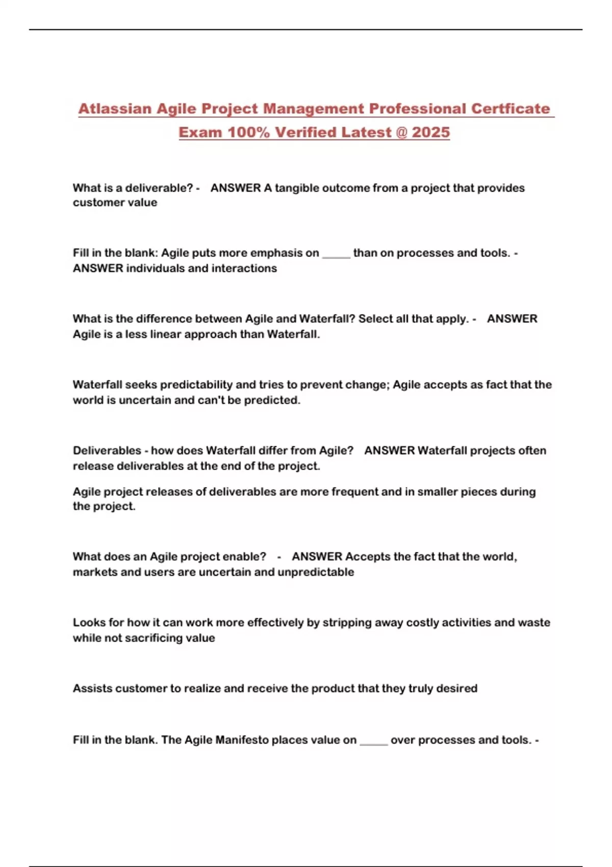 Atlassian Agile Project Management Professional Certficate Exam 100% Verified Latest @ 2025...