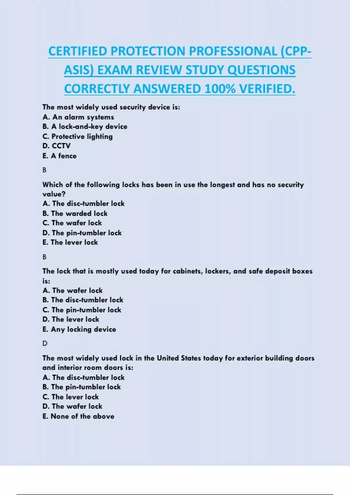 ASIS) EXAM REVIEW STUDY QUESTIONS