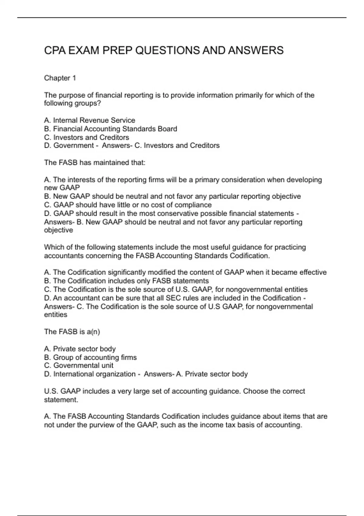 CPA EXAM PREP QUESTIONS AND ANSWERS