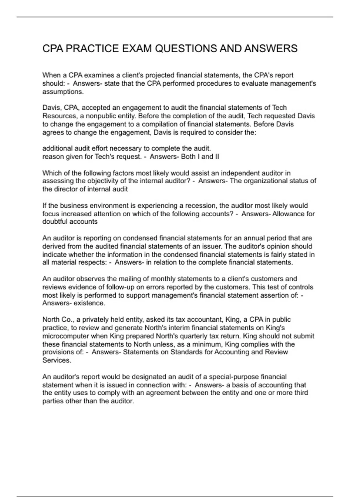 CPA PRACTICE EXAM QUESTIONS AND ANSWERS