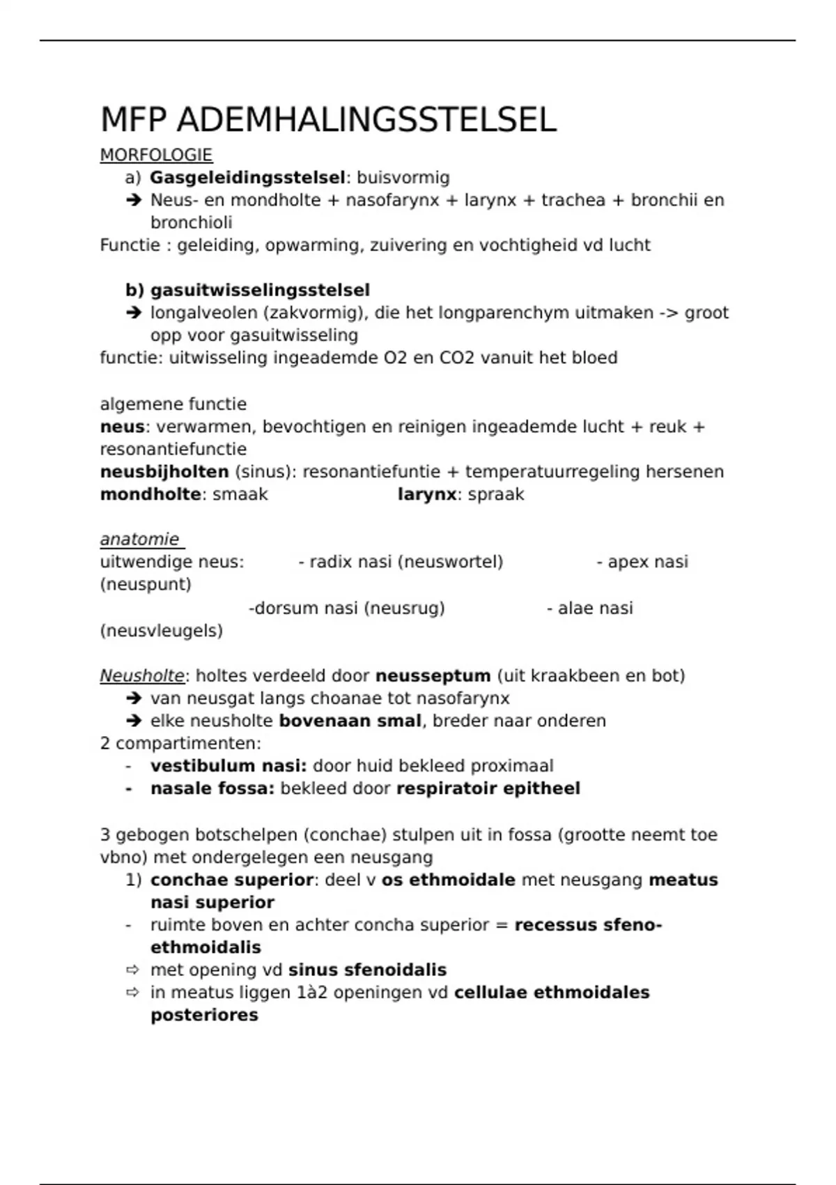 Samenvatting - mfp ademhalingsstelsel