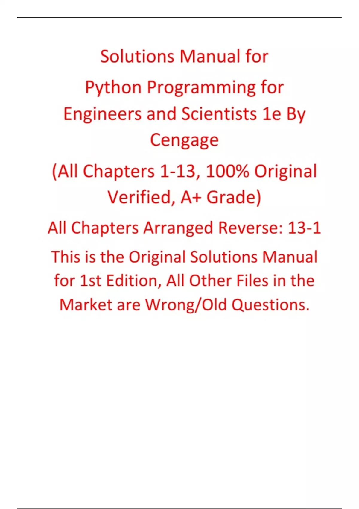 Solutions Manual for Python Programming for Engineers and Scientists 1st Edition By Cengage (All Chapters, 100% Original Verified, A+ Grade) Solutions Manual for Python Programming for Engineers and Scientists 1st Edition By Cengage (All Chapters, 100% Original Verified, A+ Grade) Solutions Manual for Python Programming for Engineers and Scientists 1st Edition By Cengage (All Chapters, 100% Original Verified, A+ Grade) Solutions Manual for Python Programming for Engineers and Scientists 1st Edition By Cengage (All Chapters, 100% Original Verified, A+ Grade)