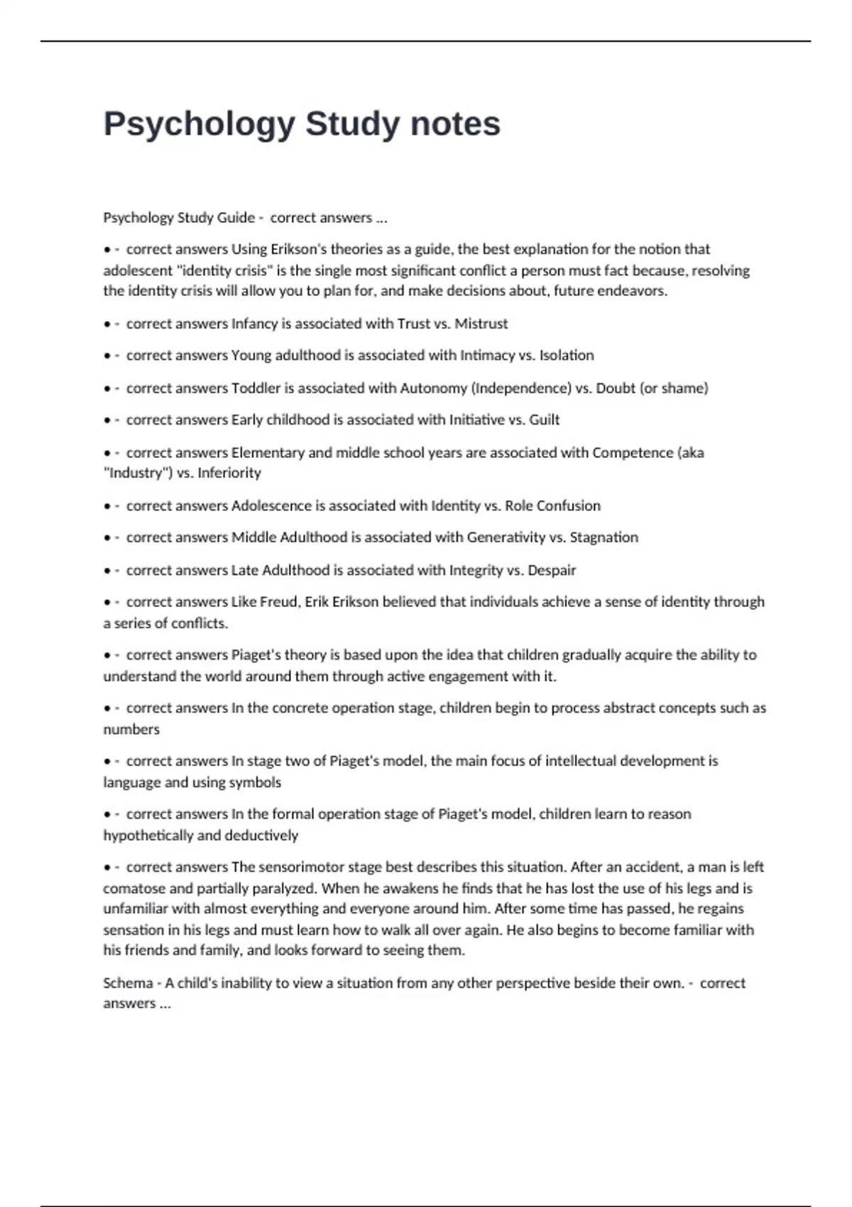 Psychology Study Guide - correct answers ...