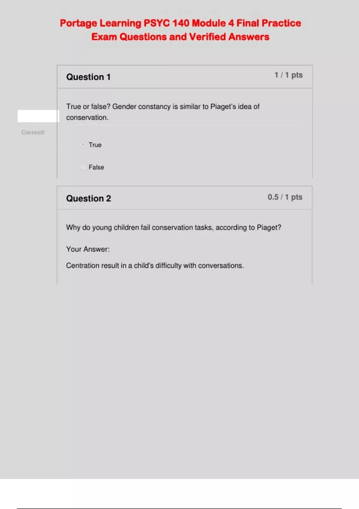 True or false? Gender constancy is similar to Piaget’s idea of