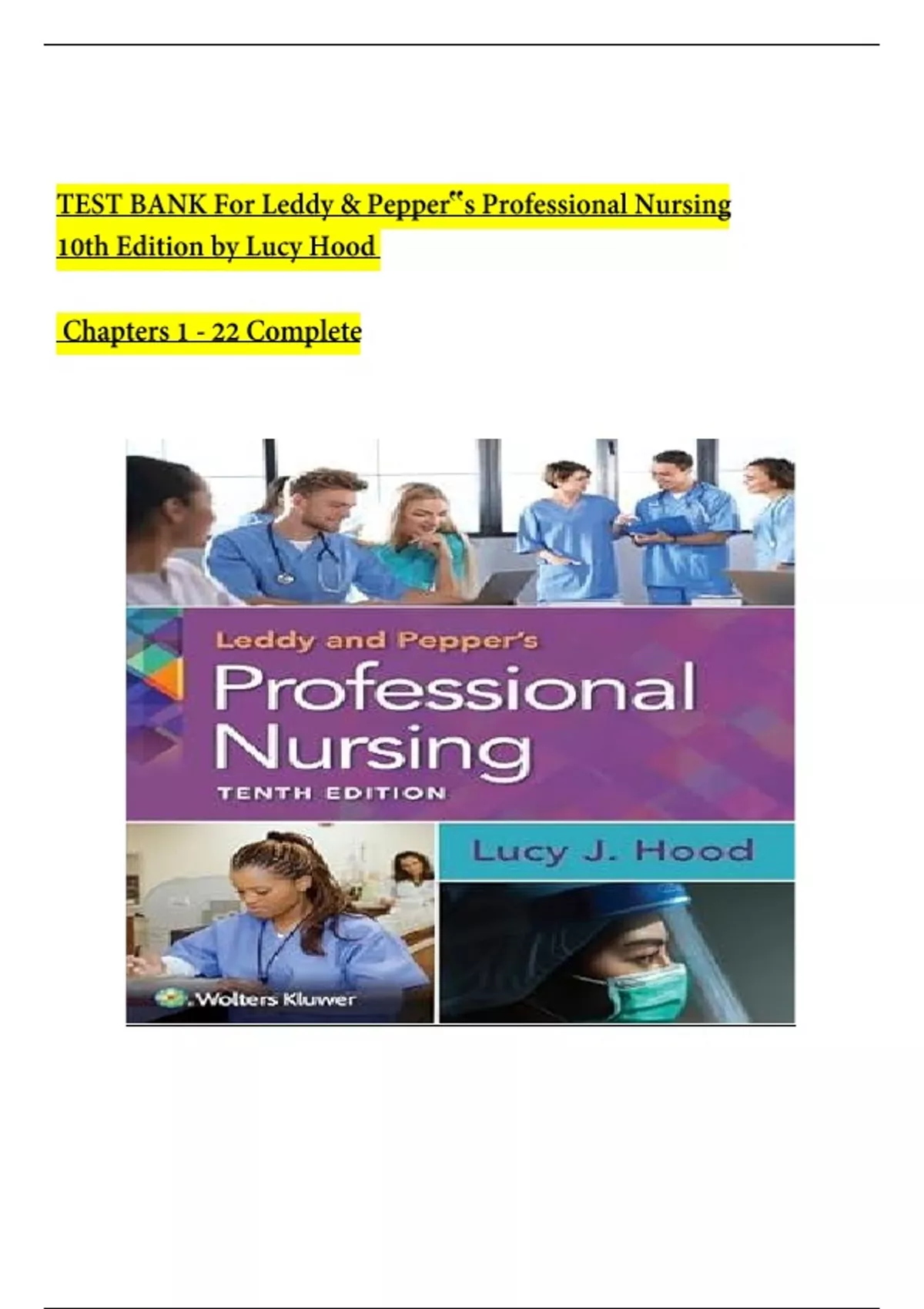 TEST BANK For Leddy & Pepper‟s Professional Nursing 10th Edition by Lucy Hood Chapters 1 - 22 Complete