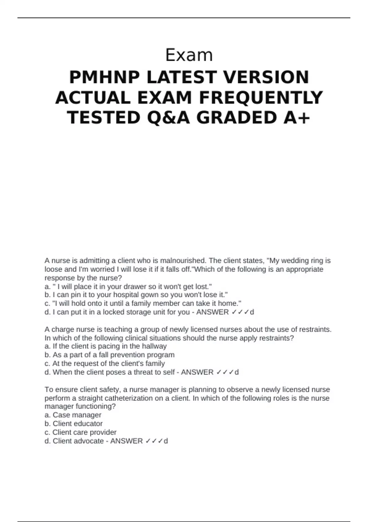 d. When the client poses a threat to self - ANSWER ✓✓✓d