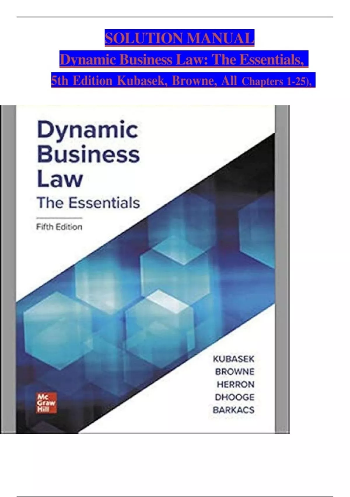 5th Edition Kubasek, Browne, All Chapters 1-25),