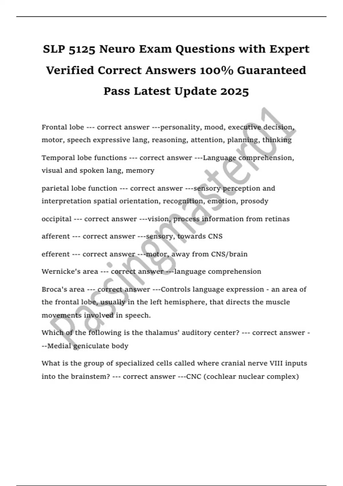 SLP 5125 Neuro Exam Questions with Expert Verified Correct Answers 100% Guaranteed Pass Latest Update 2025