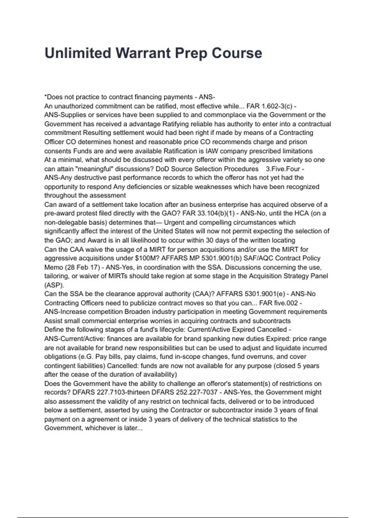 Unlimited Warrant Prep Course