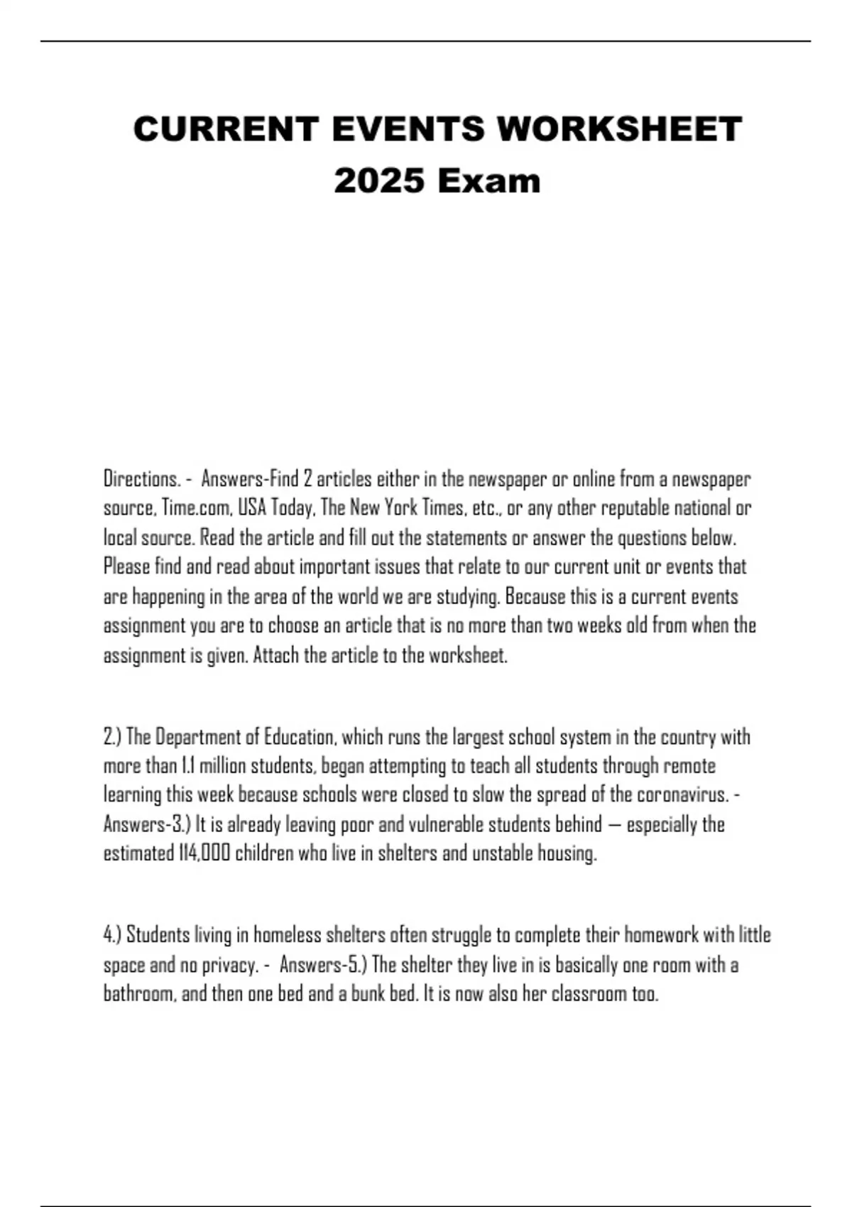 CURRENT EVENTS WORKSHEET 2025 Exam
