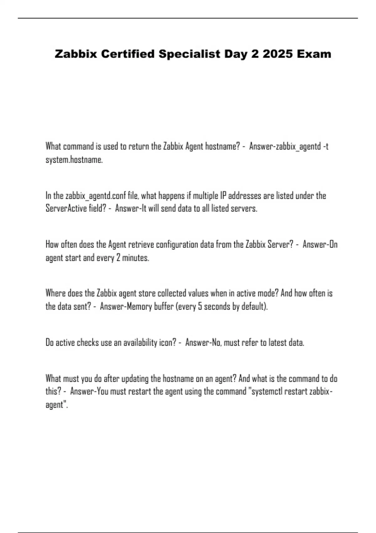 What command is used to return the Zabbix Agent hostname? - Answer-zabbix_agentd -t
