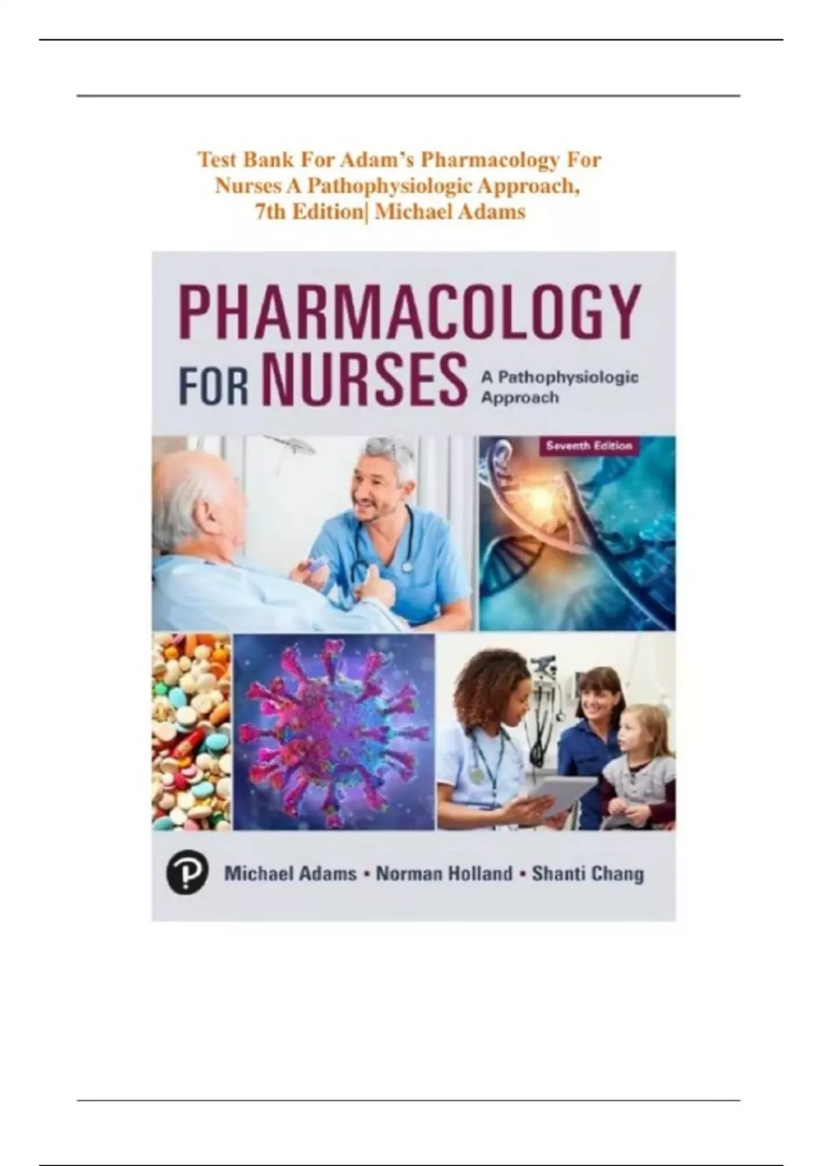 TEST BANK For Pharmacology for Nurses: A Pathophysiological Approach, 7th Edition by Adams & Holland, All Chapters 1 - 50 Complete, Verified Latest Edition.