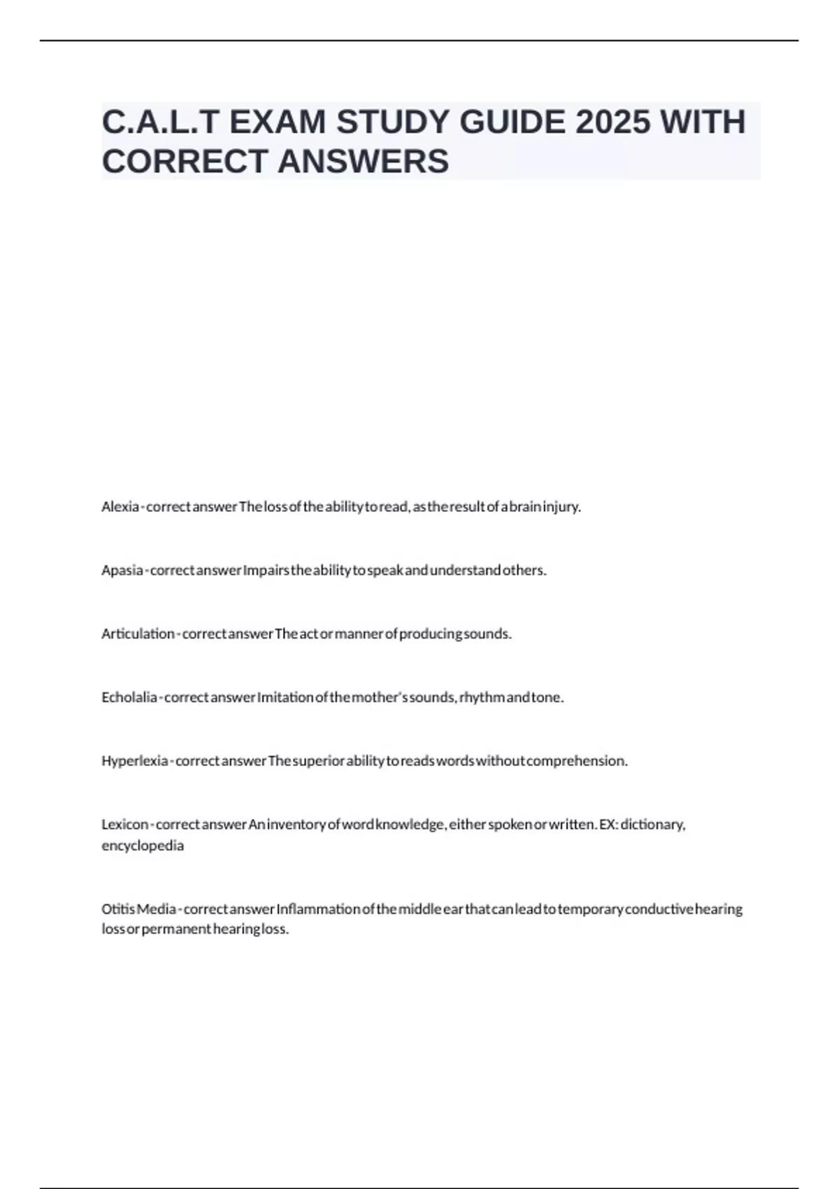 Hyperlexia - correct answer The superior ability to reads words without comprehension.