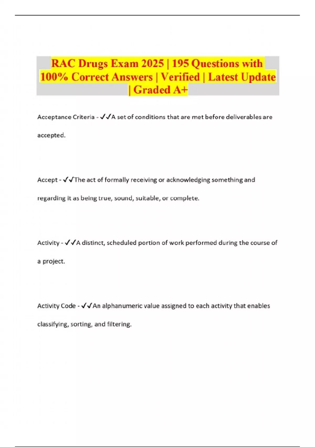 RAC Drugs Exam 2025 | 195 Questions with 100% Correct Answers | Verified | Latest Update | Graded A+