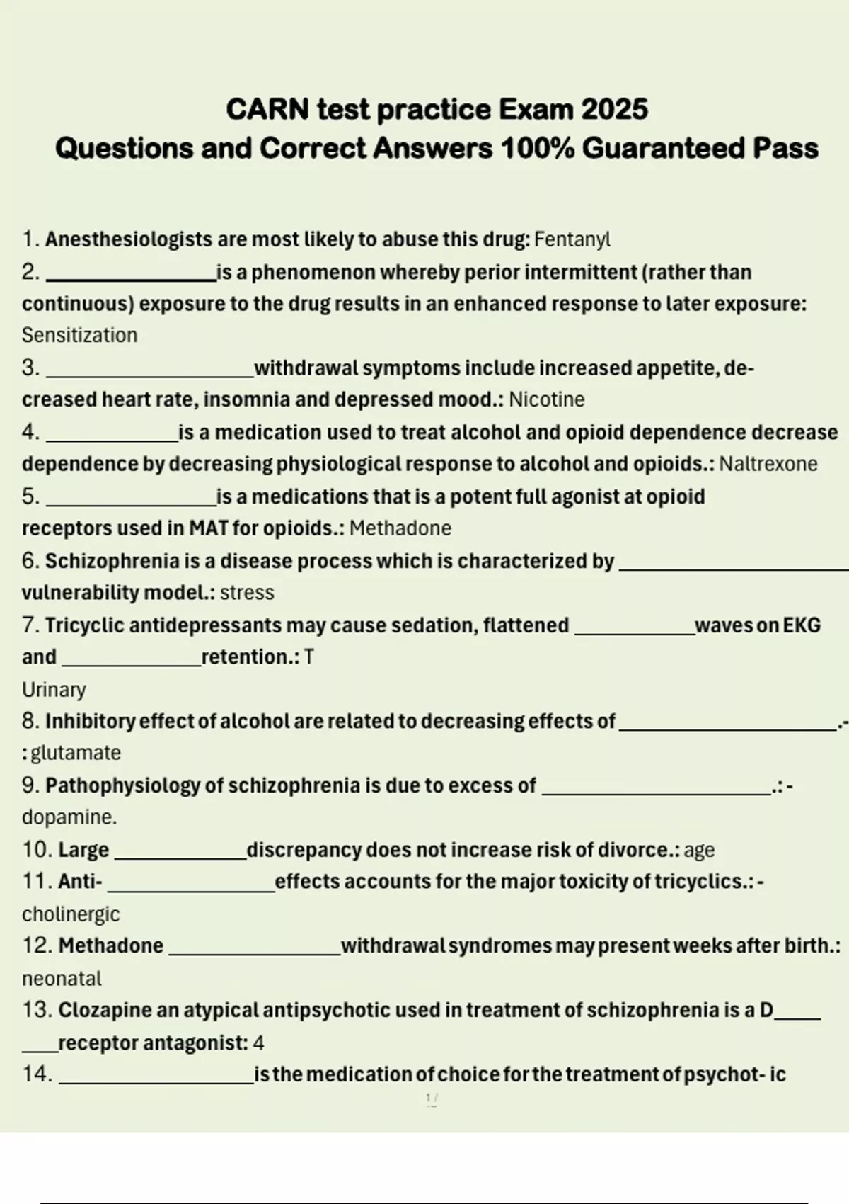 CARN test practice Exam 2025 Questions and Correct Answers 100% Guaranteed Pass