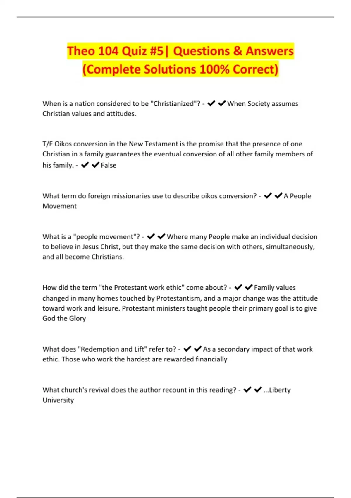 Theo 104 Quiz #5| Questions & Answers (Complete Solutions 100% Correct)