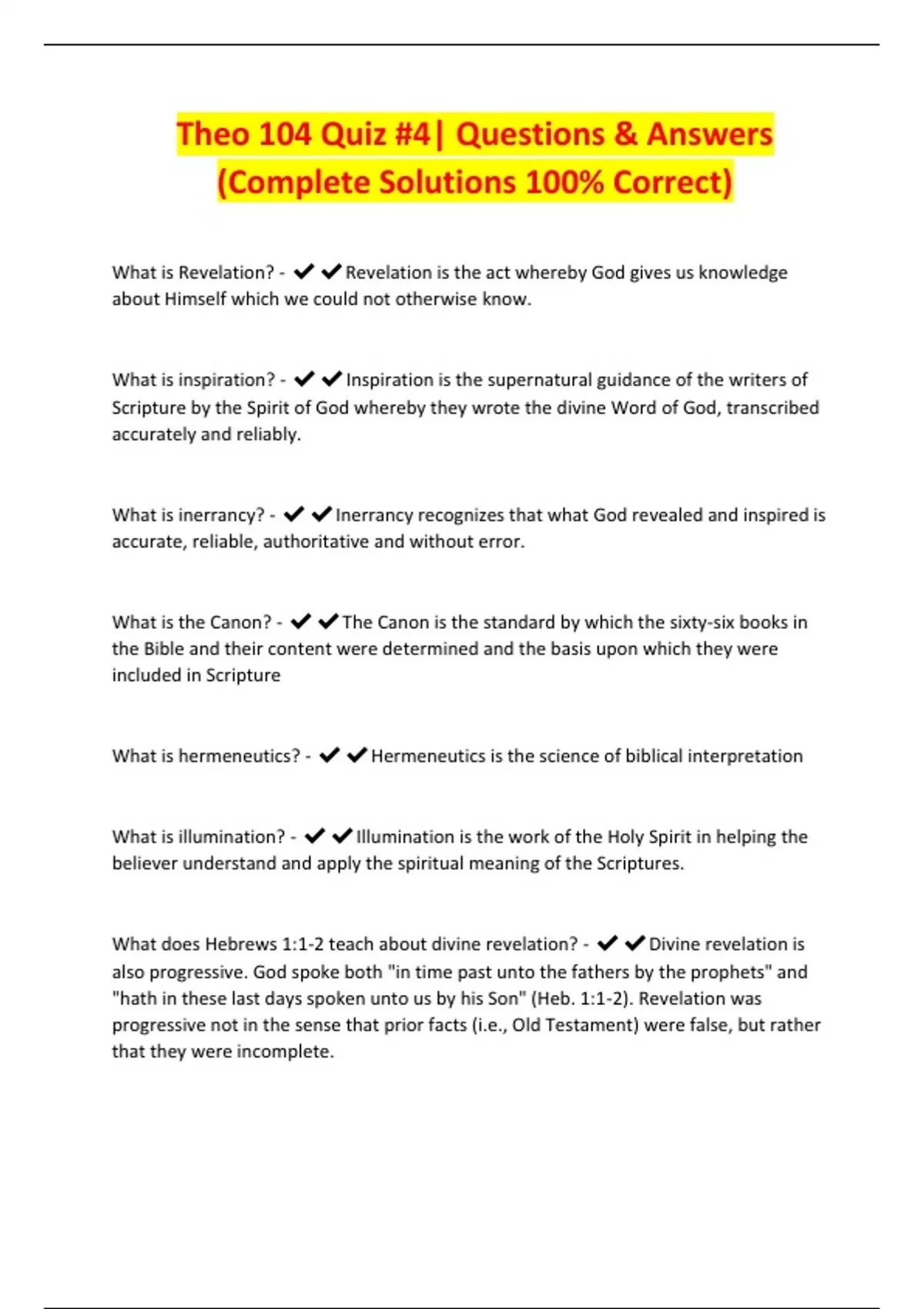 Theo 104 Quiz #4| Questions & Answers
