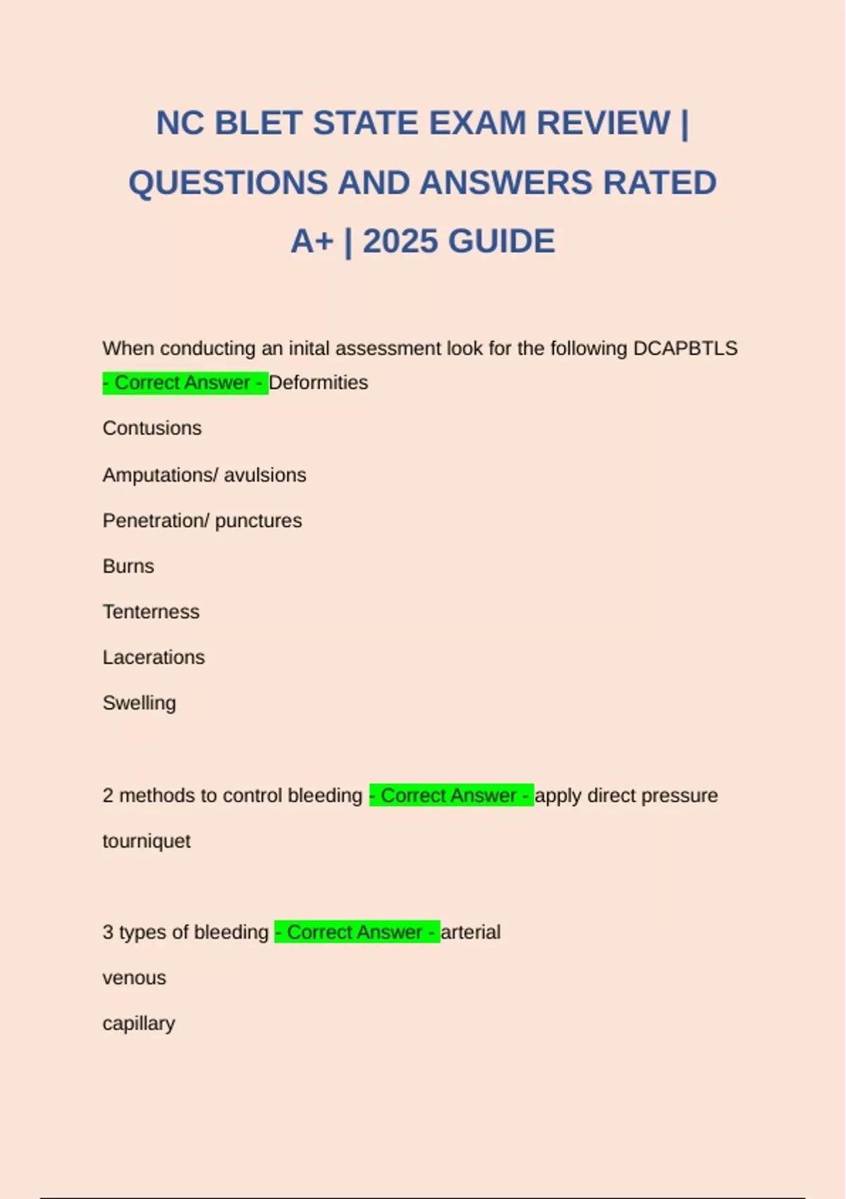 NC BLET STATE EXAM REVIEW | QUESTIONS AND ANSWERS RATED A+ | 2025 GUIDE NC BLET STATE EXAM REVIEW | QUESTIONS AND ANSWERS RATED A+ | 2025 GUIDE NC BLET STATE EXAM REVIEW | QUESTIONS AND ANSWERS RATED A+ | 2025 GUIDE
