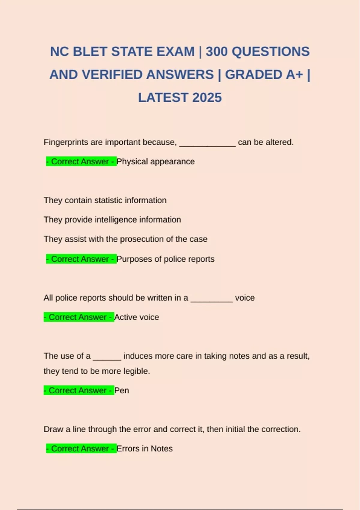 NC BLET STATE EXAM | 300 QUESTIONS