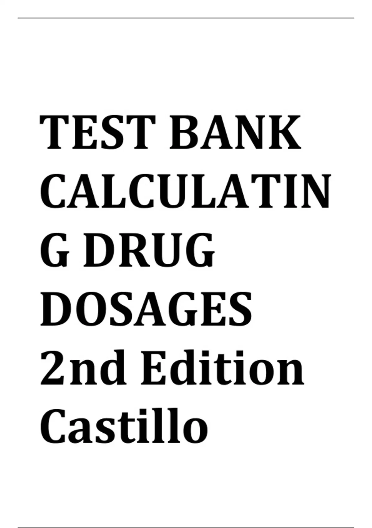 Test Bank for Calculating Drug Dosages: A Patient-Safe Approach To Nursing And Math 2nd Edition By Sandra Luz Martinez De Castillo And Maryanne Werner-Mccullough ISBN 9780803624962 Chapter 1-22 | Complete Guide A+Test Bank for Calculating Drug Dosages: A Patient-Safe Approach To Nursing And Math 2nd Edition By Sandra Luz Martinez De Castillo And Maryanne Werner-Mccullough ISBN 9780803624962 Chapter 1-22 | Complete Guide A+Test Bank for Calculating Drug Dosages: A Patient-Safe Approach To Nursing And Math 2nd Edition By Sandra Luz Martinez De Castillo And Maryanne Werner-Mccullough ISBN 9780803624962 Chapter 1-22 | Complete Guide A+Test Bank for Calculating Drug Dosages: A Patient-Safe Approach To Nursing And Math 2nd Edition By Sandra Luz Martinez De Castillo And Maryanne Werner-Mccullough ISBN 9780803624962 Chapter 1-22 | Complete Guide A+