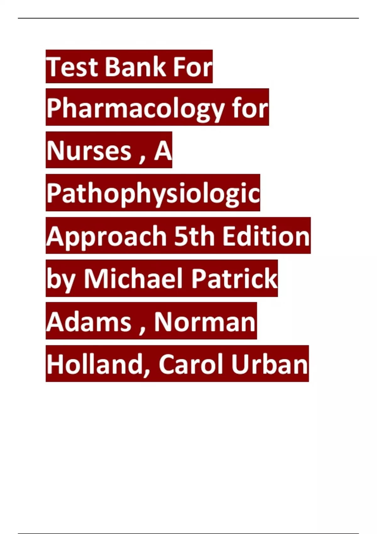 Test Bank For Pharmacology for Nurses , A Pathophysiologic Approach 5th Edition by Michael Patrick Adams , Norman Holland, Carol Urban